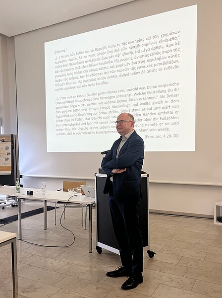 Ob durch die räumlichen Entfernungen im Reiseberichts der Egeria oder durch die lokale Begrenztheit der Wohn- und Gebetsstätte der heiligen Makrina: Auf der Tagung vom 29.-30.09 richteten sich Vorträge von Geisteswissenschaftlern aus Würzburg, Augsburg, Bern, Bochum, Bonn, Göttingen, Halle, Regensburg und Mainz nach dem Tagungstitel “Frauen - Räume“, um den Lebenswelten von Frauen der Spätantike mittels vielfältiger Fachgebiete näherzukommen.